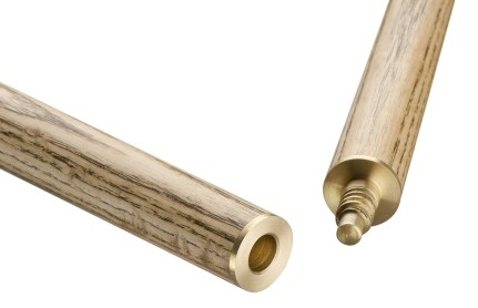 Peradon Classic Two Piece Snooker CueThe Classic two piece snooker cue is made by Peradon in Liverpool from North American Ash and Bubinga Woods. The Ash is carefully selected, before a Bubinga front splice with Plum and Sycamore veneers are then spliced to the end butt section to further enhance the look. The cue is then turned to its final tapered finish before the sanding and finishing processes are undertaken to achieve a smooth finish. To eliminate joint problems the two sections of the 'quick action' joint are each precision turned from a single piece of solid brass and fitted to ensure precise alignment of the Ash grain either side of the brass collar. The butt is finished with a Peradon Classic name disc and 'quick action' butt end joint to accept the optional extensions.This cue features a solid brass ferrule and 9 ½ to 10mm Elkmaster tip. A nice looking cue.